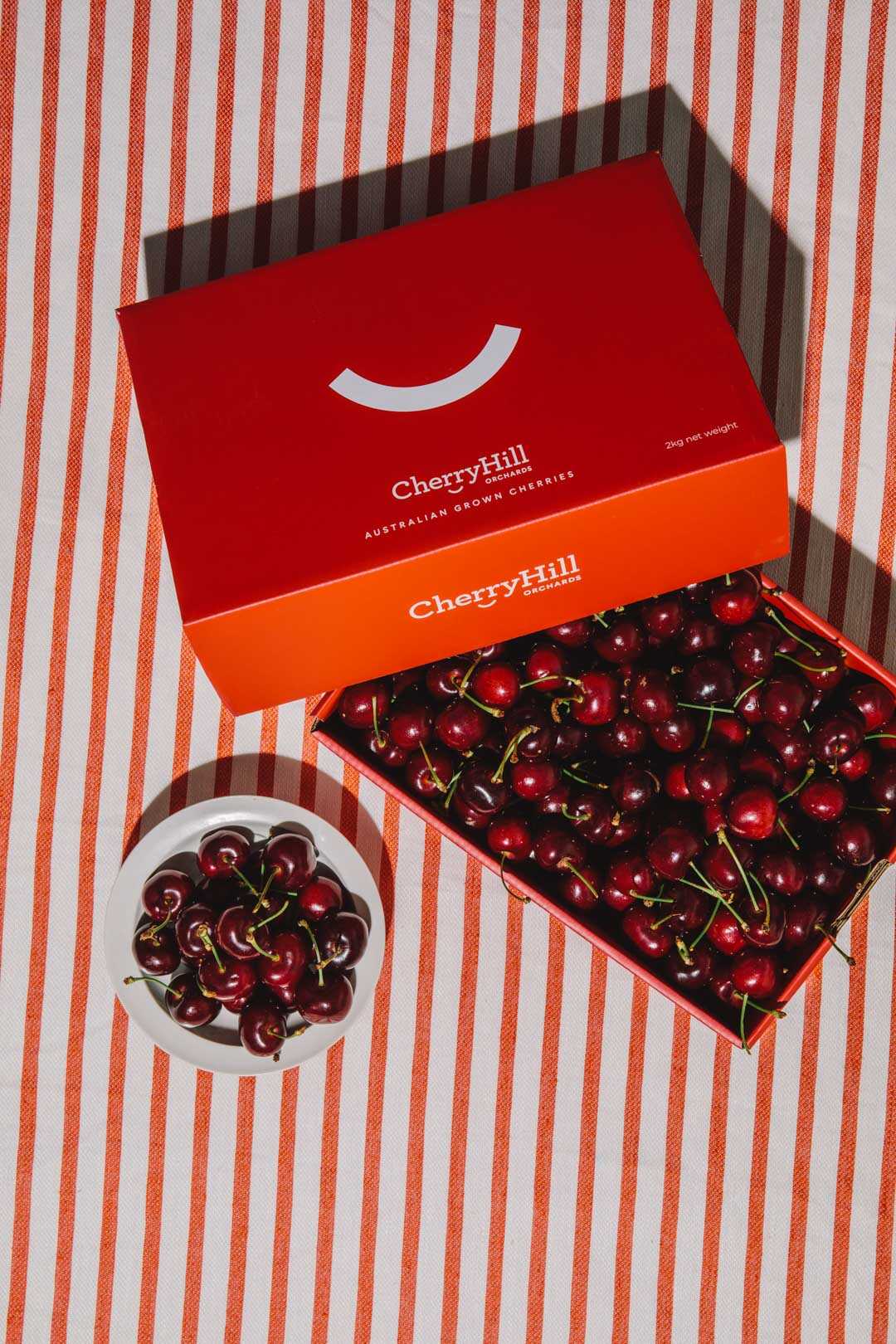Our cherries are grown in our Victorian orchards, hand picked, hydro-cooled and transported in refrigerated trucks to maintain ultimate freshness. Our cherries are then placed in a cool room at 1 degree Celsius before being packed and dispatched within 48 hours of harvest. You will taste the difference when you bite into a fresh CherryHill cherry!